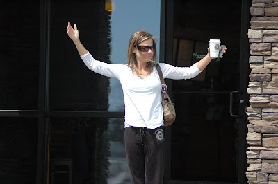 Speaking of Laura, she raced the olympic distance on Sunday. I got to be her sherpa. I went to hang out at the swim start. I found my way onto the dock and was approached and asked if I wanted to announce the next wave start as well as blare the horn. So, I got to give a shout out to Laura and Roger (who was already on the bike) and got to mention our tri-club and talk about myself (they asked!). As Laura later explained, she could hear me saying her name and she was looking around at people saying "that's me". The funniest part was after this shot. The announcer had just realized that the Laura that I had given a shout out to earlier was now warming up in the water. So, she interviewed her in front of everyone and after they were done, she quickly walked over to the back of the pack and got ready for the gun to go off.